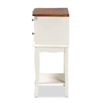 Bring a simple elegance to your interior with the wonderfully crafted Darla end table. Fitted with two drawers and a lower shelf, this piece offers plenty of room for household necessities. The Darla is made in China and showcases unique woodwork with inset paneled drawers and cabriole legs, giving the piece a traditional look. Fully assembled, the Darla’s cherry brown finished wood top offers ample space to display decorations. Artistically engraved knobs add a touch of glamour that elevate the Darla into a fantastic choice for any arrangement. Dimensions: 30.7″ high x 19.3″ wide x 13.6″ deep; Drawer dimensions: 4.7″ high x 13.4″ wide x 11″ deep; Legs: 18.9″ high;