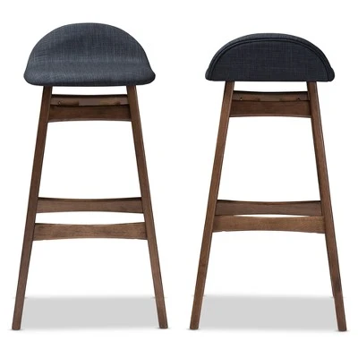 Infuse your home with everyday function and organic appeal with the Bloom Mid-century Retro Modern Scandinavian Style Dark Blue Fabric Upholstered Walnut Wood Finishing 30-Inches Bar Stool. This modern bar stool features a bold solid wood base that ensures long lasting strength, while the plush seat in dark blue fabric is small with supportive back rest. The built in footrest offers extra support. Bloom barstool is the perfect balance of comfort and style. The crisp clean lines and subtle curve is combined with supportive seating. A small cushioned seat with lipped edges and a low back rest keeps you comfortable and well supported, while a built in foot rest provides extra support. The barstool infuses the modern space with an innate style. Made in Malaysia, the Bloom requires assembly.