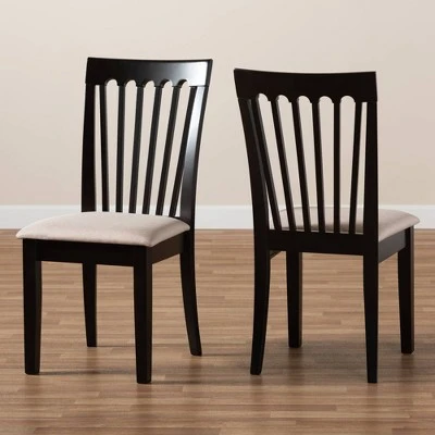 Timeless design is merged with modern comfort in the Minette dining chair. Made in Malaysia, this solid wood chair features a sleek espresso finish that complements the light polyester fabric upholstery. An optimal balance of comfort and style, the Minette features a plush foam-padded seat, as well as a striking cut-out design on its back for enhanced visual appeal. The Minette dining chair requires assembly and is compatible with a wide range of kitchen color palettes. Whether used for chic dinner parties or casual family dinners, the Minette chair is sure to elevate any dining experience. Dimensions: 38.2″ high x 21.7″ wide x 18.5″ deep; Seating dimensions: 18.5″ wide x 16.1″ deep x 18.5″ high (from Floor); Back: 19.7″ high; Legs: 16.9″ high;