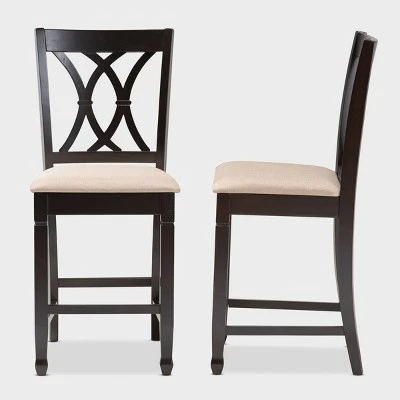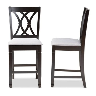 Featuring an exquisitely crafted frame, the Reneau pub chair adds elegance to any dining space. This solid rubberwood chair displays a sleek finish that complements the polyester fabric upholstery. Designed to add both comfort and style to your dining space, the Reneau features a plush foam-padded seat, as well as a stunning cut-out design on its back. Tapered feet add a classic, refined touch. Constructed at counter height, the Reneau is well suited for use with kitchen counters and pub tables. The Reneau pub chair is made in Malaysia and requires assembly.