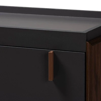 - Two-tone gray and walnut brown finish