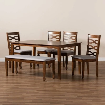 6pc Lanier Dining Set Gray/Walnut/Brown – Baxton Studio