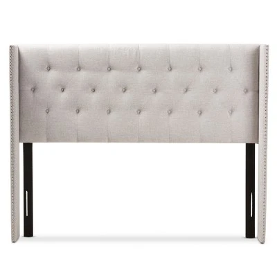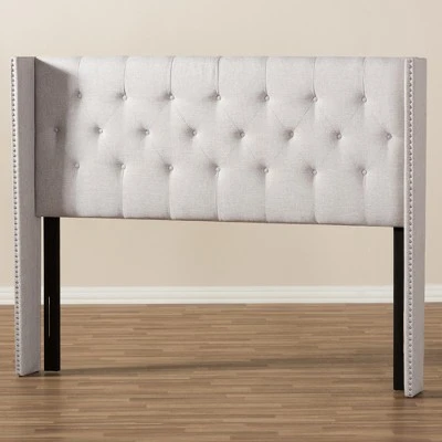 Complete the look of your sleep space with a touch of classic yet modern, textured style with the Ally fabric upholstered winged headboard. Constructed of solid rubberwood and plywood frame for long-lasting strength and structural support, the Ally is upholstered with polyester fabric that’s durable and soft to touch. Foam filling offers a soft finish for plush and comfortable style. The headboard features a rectangular-angled frame in standard with button-tufted detail finish, and curved wings that follow down to base for stability. For glamour and an updated look, the silver nail heads trim along the sides of the winged headboard. Frame your sleep space with this up-to-date classic, upholstered style without renewing your existing bed set-up. Made in Malaysia, the Ally imparts a sense of refined elegance into your bedroom interior.
