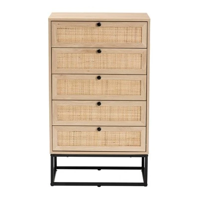 Amelia Wood Rattan 5 Drawer Storage Cabinet Natural Brown/Black – Baxton Studio