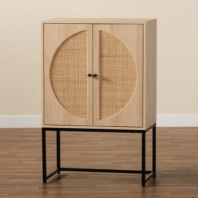 Combining retro design with modern geometry, the Ardon storage cabinet adds value to any space. Made in China, this striking piece combines natural rattan with a sturdy wood and metal frame for a tranquil, carefree display that exudes warmth. Two large shelves behind the doors offer ample space to organize and declutter busy areas of your home. Requiring assembly, the doors of the Ardon feature natural rattan accents for a charming, exotic touch. With a crisp and clean silhouette, the Ardon injects character to any space. Overall Dimensions: 40.90″ High x 26.80″ Wide x 15.70″ Deep; Legs: 14.40 “High; Storage Behind Door Dimensions: 25.60″ Wide x15.60″ Deep x 25.80″High; Door Dimensions: 25.50″ Long x12.50” Wide;