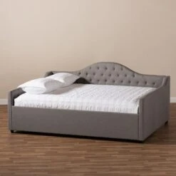 Queen Fannie French Classic Modern Style Polyester Fabric Platform Bed Dark Gray – Baxton Studio