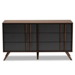 6 Drawer Naoki Wood Bedroom Dresser Gray/Walnut – Baxton Studio