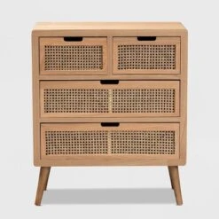 Alina Wood And Rattan 4 Drawer Accent Chest Oak – Baxton Studio