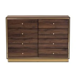 Cormac Wood And Metal 8 Drawer Dresser Walnut Brown/Gold – Baxton Studio