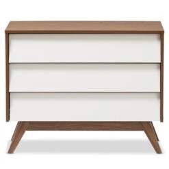 Harlow Mid-Century Modern Scandinavian Style Wood 3 Drawer Chest White/Walnut – Baxton Studio