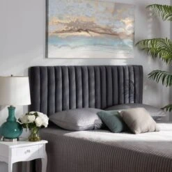 Cadence Modern And Contemporary Fabric Button Tufted Winged Headboard Gray – Baxton Studio