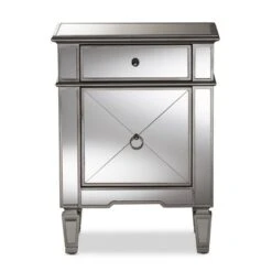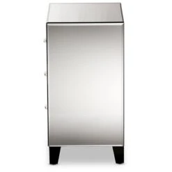 Currin Contemporary Mirror 3 Drawer Nightstand Silver – Baxton Studio