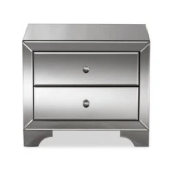 Farrah Hollywood Regency Glamour Style Mirrored 2 – Drawer Nightstand – Baxton Studio