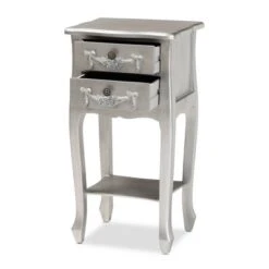 Eliya Brushed Wood 2 Drawer Nightstand Silver – Baxton Studio