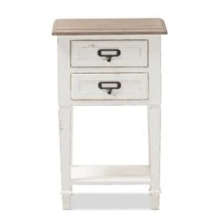 Dauphine 2 Drawer Provincial Style Oak And Distressed Finish Wood Nightstand White – Baxton Studio