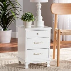 Levron And Antique Wood 3 Drawer Nightstand Walnut Brown/Antique White – Baxton Studio