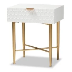 Marcin Wood And Metal 1 Drawer Nightstand White/Gold – Baxton Studio