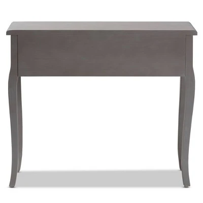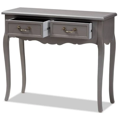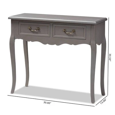 Create the chic, French-inspired home of your dreams with the Capucine console table. Constructed from wood, the Capucine showcases a stunning finish. The tabletop features space to display flowers and decor, while two drawers provide ample storage for keys and knick-knacks. Each drawer is fitted with elegant metal pulls for easy access. Cabriole legs add a charming, antique-inspired touch. The Capucine console table is made in China and requires assembly. Dimensions: 30.3″ High x 35.4″ Wide x 13″ Deep; Drawer: 4.1″ High x 11.8″ Wide x 10.6″ Deep; Legs: 21.3″ High
