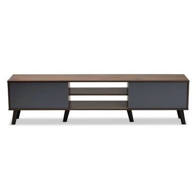 Clapton Multi Toned Wood TV Stand For TVs Up To 75″ Gray/Brown – Baxton Studio