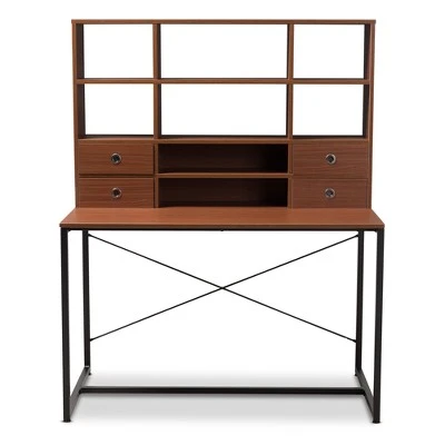 Bring inspiration and charm to your personal workspace with the Edwin 2-in-1 bookcase writing desk. Constructed of lightweight engineered wood and sturdy steel, this desk is made to last. The industrial-inspired look of the steel frame blends with the rustic-style, -finished desk top, mathe Edwin a charming addition to your study, den, home or private office. Eight symmetrical shelves give you many options for the storage of books, office supplies or decor. The Edwin is also a great desk to help keep organized, featuring four discreet drawers with zinc-finished handles. Made in China, the Edwin requires assembly. Dimensions: 59.45″ High x 47.24″ Wide x 25.59″ Deep; Desk Top: 29.92″ High x 47.24″ Wide x 16.06″ Deep; Drawers: 3.43″ High x 10.87″ Wide x 7.95″ Deep; Left&Right Shelves: 8.7″ High x 11.97″ Wide x 9.41″ Deep; Middle Shelves: 8.7″ High x 20.63″ Wide x 9.41″ Deep