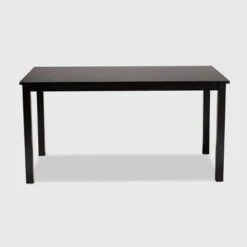 Anchor your dining room with the simple elegance of the Eveline dining table. Constructed from sturdy wood, the Eveline comfortably seats up to six. An espresso brown finish and rectangular tabletop give the table a sleek, contemporary look. Designed for versatility, the Eveline is well suited for both casual and formal dining. The Eveline dining table is made in Malaysia and requires assembly. Dimensions: 29.13″ high x 59.06″ wide x 35.43″ deep; Legs: 28.35″ high;