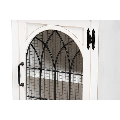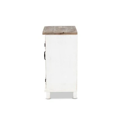 Bedroom organization is made easy with the charming Faron nightstand. Made in China, the Faron is comprised of a sturdy wood frame featuring a lightly weathered two-tone white and oak brown finish for an aged, vintage look. Two shelves behind the door provide ample space to organize bedside essentials, while the tabletop lends space for daily use. Fully assembled, the Faron is adorned with antique inspired, black finished metal accents for a cool, industrial touch. A fantastic assistant to the modern household, the Faron nightstand adds value to any space.