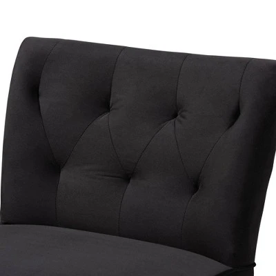 The pleasant yet vibrant design of the Harmon accent chair enriches any space. Made in Malaysia, the Harmon is comprised of a sturdy wood frame padded with soft foam and upholstered in sumptuous velvet fabric. Geometric tufting on the backrest creates a visually striking display while ensuring a plush and comfortable experience. Requiring assembly, the Harmon is supported by ring turned legs for stable support and an elegant look. A classic design with contemporary flair, the Harmon chair is a cozy addition to the modern home. Dimensions: 30.5″ High x 25″ Wide x 26.8″ Deep; Seating Dimensions: 17.7″ High x 24″ Wide x 19.3″ Deep; Back: 12.8″ High; Legs: 8.9″ High;