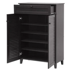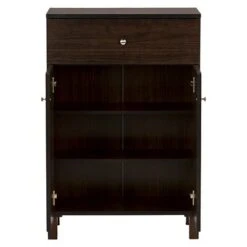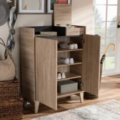 Fella Two-Tone Oak And Entryway Shoe Cabinet With Lift Top Storage Compartment Brown – Baxton Studio