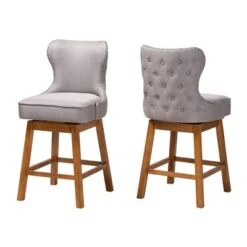 2pc Gradisca Wood Swivel Counter Stool Set Gray/Walnut Brown – Baxton Studio