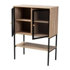 Asher Wood And Metal 2 Door Sideboard Dining Cabinet Natural Brown/Black – Baxton Studio