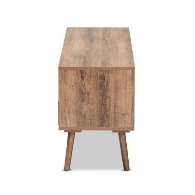 Update the character of your home with the contemporary design of the Leane TV stand. Made in China, this stunning piece is constructed from sturdy wood. Three shelves create a convenient display for all your living room essentials, while three drawers offer more secure storage space. Requiring assembly, the Leane features concave drawer handles that add geometric texture. Angled legs lend a classic feel, making the Leane TV stand a remarkable addition to any space.