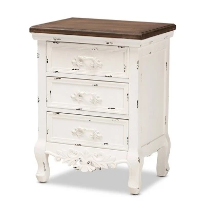 Bring the charm of mid-century design to your space with the Levron end table. Made in China, this end table is constructed from solid wood with molded embellishments. Three drawers offer convenient storage space to organize a variety of household essentials. The Levron utilizes cabriole legs for stable support in elegant mid-century style. A timeless design equipped with modern convenience, the Levron end table is a fantastic addition to any space. Overall Dimensions: 23.62″ High x 18.11″ Wide x 13.39″ Deep; Drawer Dimensions: 13.39″ Wide x 10.83″ Depth x 4.53″ High; Legs: 4.92″ High;