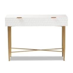Edouard French Provincial Style Console Table With 2 Drawers – White/Light Brown – Baxton Studio