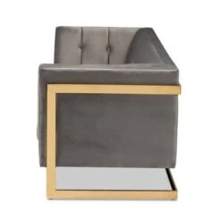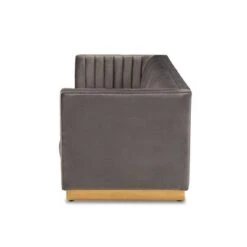 Aveline Velvet Upholstered Finished Sofa Gray/Gold – Baxton Studio