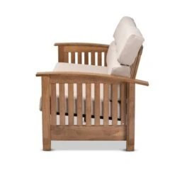 Bianca Wood And Tan Faux Leather Loveseat Tan/Walnut Brown – Baxton Studio