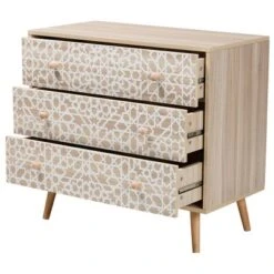 Beau Two-Tone Wood 3 Drawer Storage Cabinet White/Natural Brown – Baxton Studio