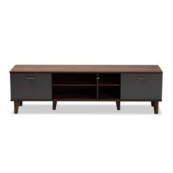 Moina Two-Tone Wood TV Stand For TVs Up To 70″ Walnut/Gray – Baxton Studio
