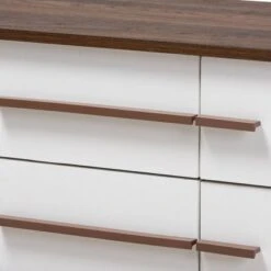 Meike Two-Tone Wood TV Stand For TVs Up To 70″ Walnut/White – Baxton Studio
