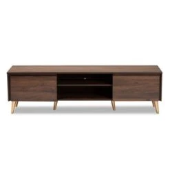 Landen Mid-Century Modern Wood TV Stand For TVs Up To 65″ Walnut/Gold/Brown – Baxton Studio