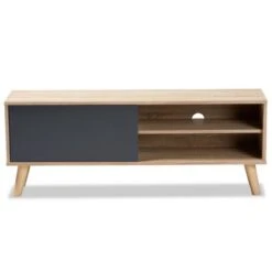 Mallory Two-Toned Oak Wood TV Stand For TVs Up To 55″ Oak/Gray – Baxton Studio
