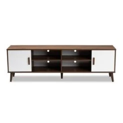 Quinn 2 Door Wood TV Stand For TVs Up To 75″ Walnut/White – Baxton Studio