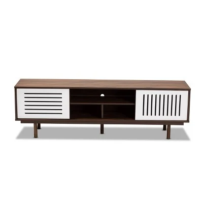 Meike Two-Tone Wood TV Stand For TVs Up To 70″ Walnut/White – Baxton Studio
