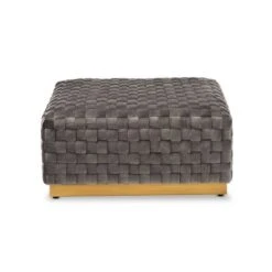 Add luxurious comfort to any space with the Noah ottoman. Made in China, the Noah is upholstered in a sleek velvet fabric that is intricately woven to add texture and accentuate the stunning gray tones. Plush foam padding provides ample comfort, while the gold-tone metal base lends a glamorous look. Fully assembled, this versatile piece can be used as a coffee table, footstool, or as extra seating for guests. Spruce up any living room with lavish appeal and utility of the Noah ottoman.