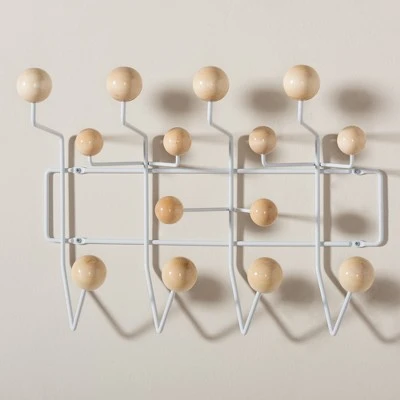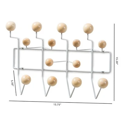 Capture a fun and creative vibe while keeping a ship-shape tidy space with the Penny coat hanger. Made from steel rod frame with white powder-coated finish for a sturdy quality with contemporary good looks, the Penny coat rack combines practicality with fun and playful design to become a sculptural feature in your living space. Different sizes of the finished spheres ensure your coats, hats and umbrellas won’t fall off onto the floor. Suitable for your entryway, keeping the space neat and tidy while remaining fun and eye-catching. Made in China. Dimensions: 15.2″ High x 15.75″ Wide x 5.5″ Deep