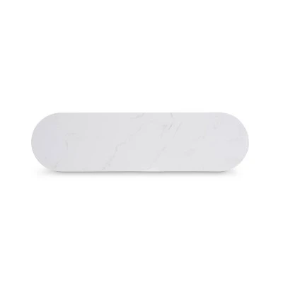 Cultivate an air of luxury in your space with the Samuel console table. Made in China, the Samuel is comprised of a minimalist gold finished metal frame and an oval-shaped faux marble tabletop. The slim silhouette and wide surface area make this piece ideal for decluttering entryways or living rooms. Requiring assembly, the Samuel is fitted with black non-marking feet for easy transport and rearrangement. Display your favorite decorative pieces on the glamorous Samuel console table.