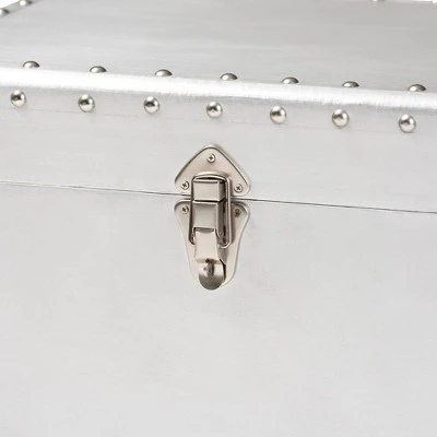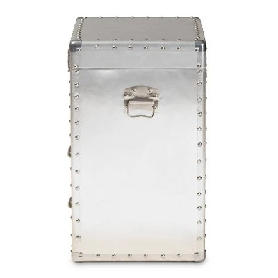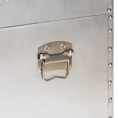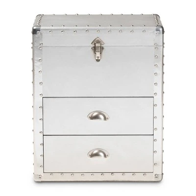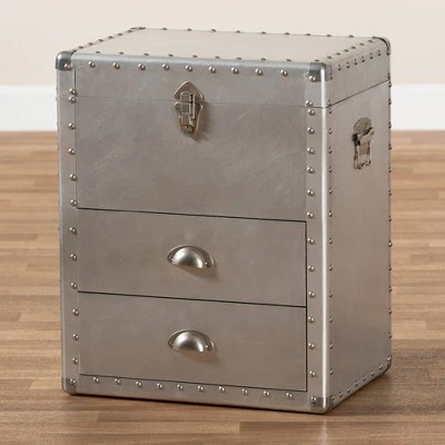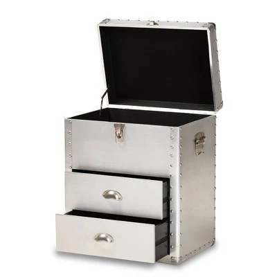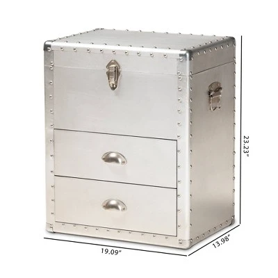 Bring chic industrial style into your space with the Serge cabinet. Constructed from wood and metal, the Serge features a unique lift-top compartment with ample storage space. Two drawers provide additional space to keep items organized. Polished silver metal drawer handles add a sleek touch. Inspired by vintage storage trunks, the Serge is embellished with rivets and corner protectors. This cabinet is well suited for a living room or entryway. The Serge cabinet is made in China and will arrive fully assembled. Dimensions: 23.23″ High x 19.09″ Wide x 13.98″ Deep; Drawer: 14.57″ High x 10.83″ Wide x 4.72″ Deep; Inner Shelf: 6.89″ High x 17.72″ Wide x 12.6″ Deep;