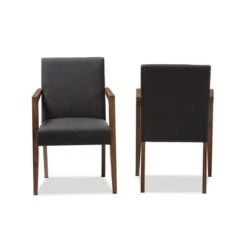 With character and style, the Andrea wooden armchair brings distinct edges to the modern home. Featuring classically timeless and intuitively versatile, the Andrea is constructed of solid wood frame for durability. Upholstered in polyester fabric, the back and seat cushions are foam-filled to provide comfort and support. The legs and armrests in walnut finishing, built geometrically, blending in aesthetic while lending support and comfort. Sturdily constructed, the Andrea armchair looks great from all angles, whether in a lounge arrangement, public waiting area or private office. Made in Malaysia, the Andrea accent chair will be a standout piece in any modern interior. Dimensions: 35.83″ High x 22.64″ Wide x 24.61″ Deep; Seating Dimensions:20.08″ High (from Floor) x 19.09″ Wide x 17.32″ Deep; Height (From Floor to top of arms): 26.77″ High; Arm Height: 7.09″ High; Legs: 13.98″ High