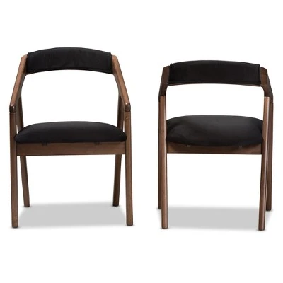 Meticulously crafted with craftsmanship, the Wendy dining chair is as functional as it is stylish. Featuring cushioned seats upholstered in velvet upholstery, this set of two dining chairs feature curved backrest with downward sloping armrests extended to the ground. Embracing mid-century modern design, the Wendy will update your home decor instantly. Made in Malaysia, the Wendy requires assembly. Dimensions: 32.09″ High x 22.24″ Wide x 22.24″ Deep; Seating Dimensions: 17.72″ High (from Floor) x 20.47″ Wide x 18.5″ Deep; Back: 14.37″ High; Legs: 21.46″ High