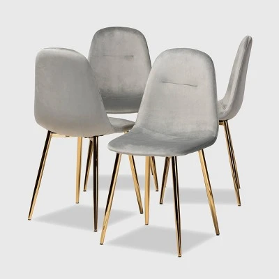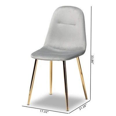 Create a glamorous setup in your dining room with the Elyse dining chair. Constructed from metal, the Elyse is upholstered in a soft, plush velvet fabric that displays a subtle sheen. Its contoured seat and back provide hours of dining comfort. Long, angled legs complete the stylish look of this chair. The Elyse dining chair is made in China and requires assembly. Dimensions: 33.86″ High x 17.32″ Wide x 21.26″ Deep; Seating Dimensions: 17.32″ Wide x 15.75″ Deep x 17.72″ High (from Floor); Back: 16.14″ High; Legs: 18.11″ High;