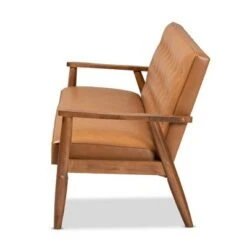 Sorrento Mid-Century Faux Leather Upholstered Wood Loveseat Walnut/Brown – Baxton Studio